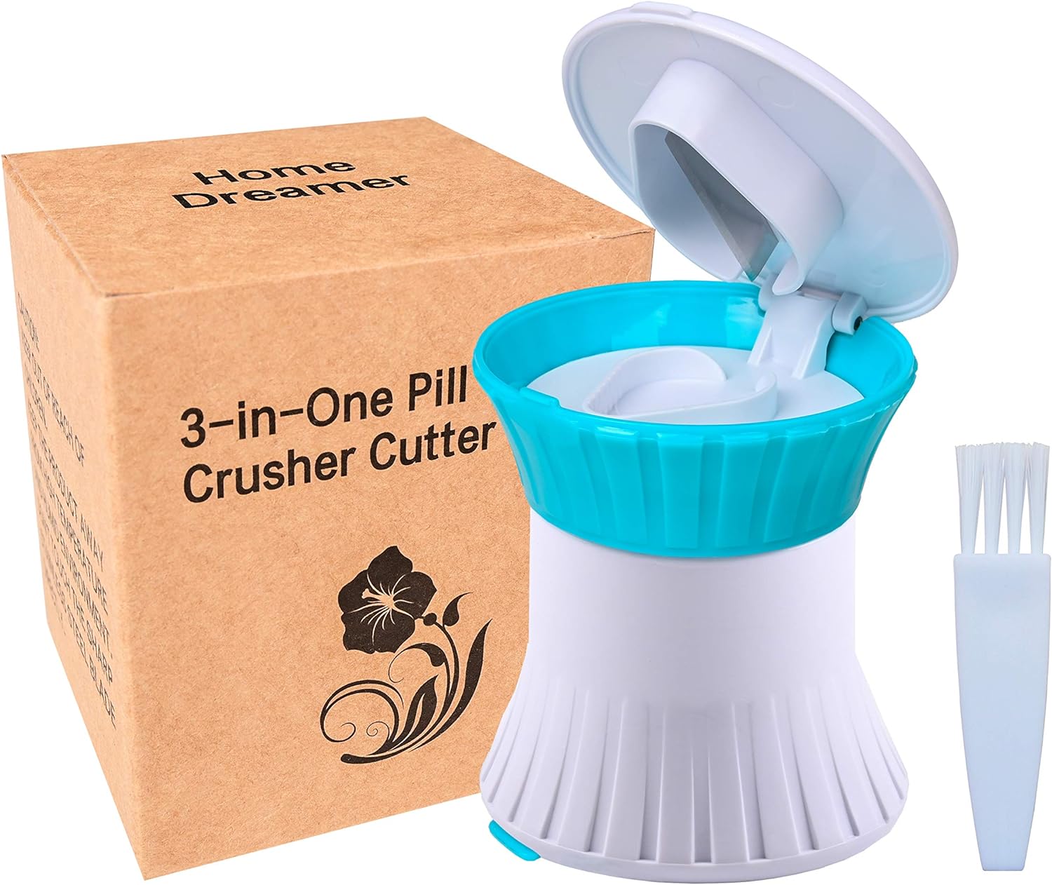 A ARCITON Pill Cutter Splitter Pill Crusher Pulverizer Grinder Includes Storage Container Multifunction 3 in 1 for Small Pills or Large Pills Vitamins Tablets(Blue)