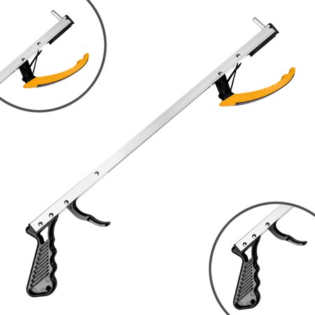 REACH ANYTHING YOU NEED - Extend your reach by over 2 feet with this reacher. Use to pick up objects on the ground, reach things on a high shelf, or grab items that have fallen into a tight space. LESS BENDING AND LESS STRETCHING - A reacher is very beneficial to anyone who struggles with limited mobility, whether that is due to injury, arthritis, injury recovery, or a lack of muscle control. ERGONOMIC FINGER TRIGGER HANDLE - Squeeze the ergonomic handle to close the open rubber jaw onto items you want to grab. This handle is contoured to comfortably fit the shape of your hand. MAGNETIC TIP & PULLING LUG - For extra assistance, a magnetic tip on the end of the reacher can cling onto metallic items like keys. A pulling lug on the top of the jaw can pull on objects like doors. LIGHTWEIGHT AND DURABLE - Our reaching aid frame is designed with premium lightweight materials and is sturdy enough to pick up various objects.