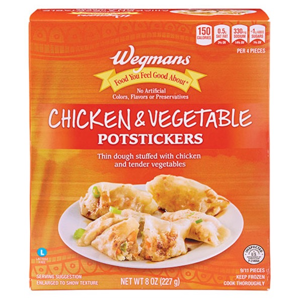Chicken, Water, Rice Flour, Tapioca Starch, Tamari Soy Sauce (Water, Soybeans, Salt, Sugar, Corn Starch), Contains 2% or Less of: Canola Oil, Ginger, Scallions, Brown Sugar, Potato Starch, Rice Wine (Rice, Water, Salt), Chicken Soup Base (Chicken Meat with Natural Juices, Salt, Sugar, Yeast Extract, Chicken Fat, Onion, Potato Flour, Turmeric, Spice Extractives), Konjac Flour, Xanthan Gum, Chicken Powder, Salt, Black Pepper, Sesame Oil, Gelatin.