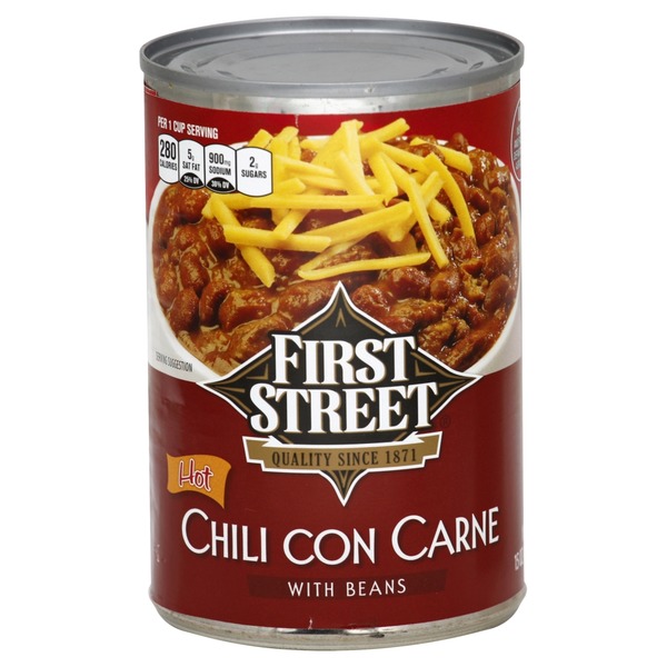 WATER, BEEF, BEANS, TOMATOES (WATER, TOMATO PASTE), CONTAINS 2% OR LESS OF MODIFIED CORNSTARCH, SALT, GREEN CHILES (CONTAINS CITRIC ACID), CORN FLOUR, CHILI POWDER (CHILI PEPPERS, FLAVORING), SUGAR, YEAST EXTRACT, FLAVORING, SPICES, CHILI FLAVOR (OLEORESIN OF PAPRIKA, NATURAL FLAVORINGS).