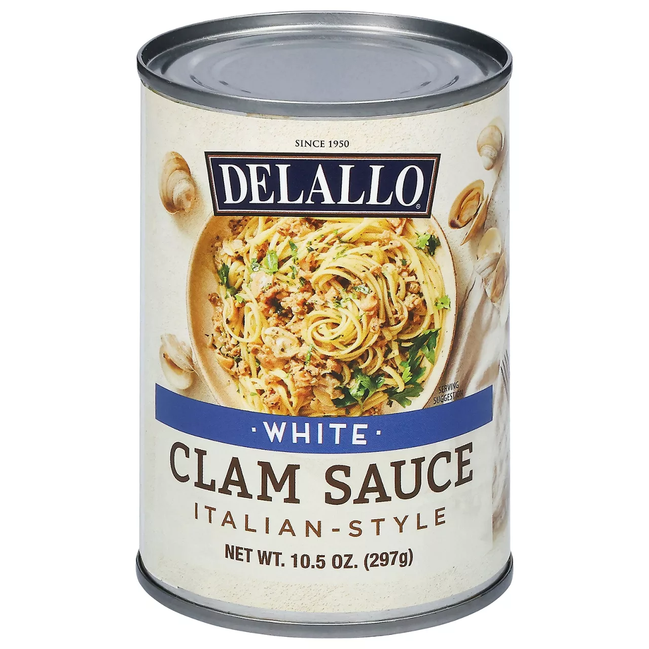 Clams and clam juice, olive oil, canola oil, modified food starch, salt, garlic, natural flavorings, parsley, spices, disodium inosinate, and basil.