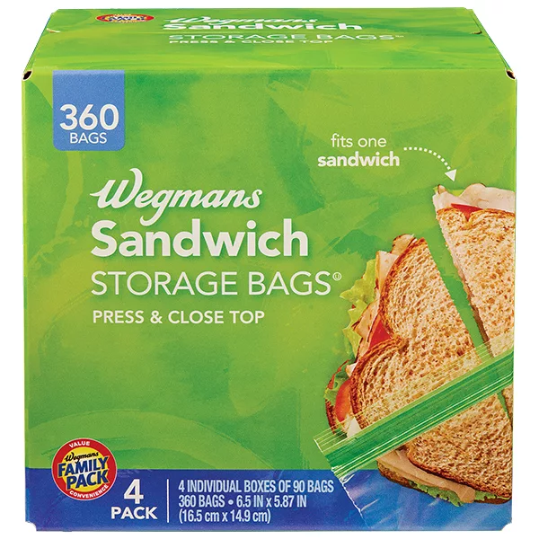 Add a little extra fun to their lunchbox with Assorted Color Food Storage Bags from up&upâ¢. These plastic food storage bags have a convenient sandwich size that's perfect for packing a sandwich or small portions of a snack with their lunch, and they come in four different color options â blue, green, yellow and red â to brighten up their lunchbox. The bags are made without BPA, and they come 64 to a pack so you have plenty on hand.