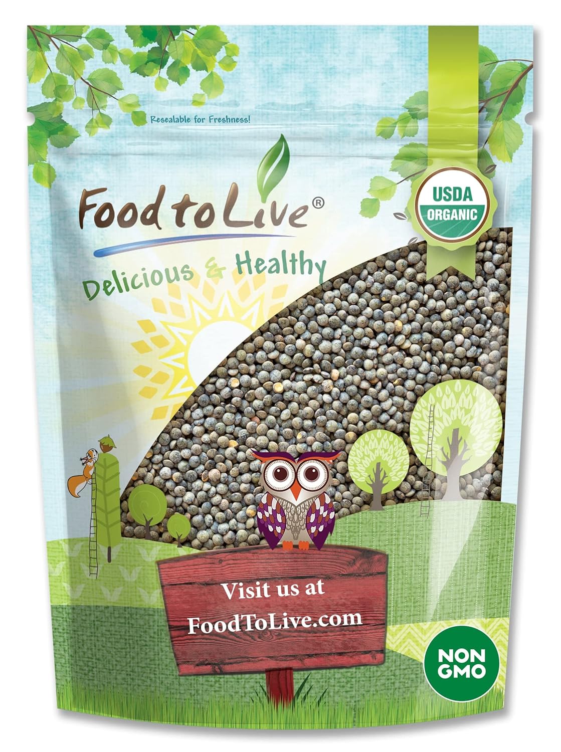 ✔️PROTEIN AND FIBER SOURCE: Eat Organic French Green Lentils to enrich your diet with plant-based proteins and fiber.. ✔️NUTRITIOUS AND TASTY: French organic lentils are rare and packed with essential nutrients, including B vitamins.. ✔️PEPPERY SAVORY GOODNESS: Organic French lentils have a deliciously natural, spicy taste with notes of mineral and earth flavors.. ✔️COOK FAST: No need for lengthy pre-soaking, you can cook French lentils and enjoy them in less than an hour.. ✔️AMAZING IN MANY DISHES: Organic French Lentils used in Chilies, curries, and stews. Add them to hummus, burgers, salads, and lentil soups.