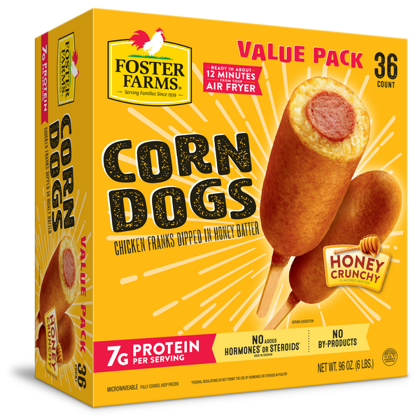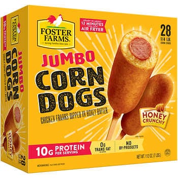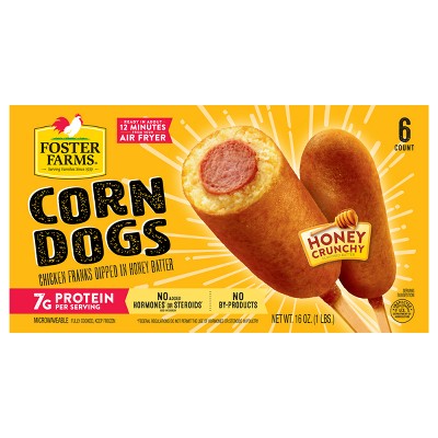 Batter Ingredients: Water, Enriched Flour (Wheat Flour, Malted Barley Flour, Niacin, Iron, Thiamine Mononitrate, Riboflavin, Folic Acid), Sugar, Yellow Corn Flour, Enriched Degermed Yellow Corn Meal (Yellow Corn Meal, Niacin, Iron, Thiamine Mononitrate, Riboflavin, Folic Acid), Soy Flour, contains less than 2% of Leavening (Sodium Acid Pyrophosphate, Sodium Bicarbonate), Soybean Oil, Salt, Egg Yolk, Potato Flour, Egg White, Dried Honey, Artificial Flavor. Fried in Vegetable Oil, Chicken Frank Ingredients: Mechanically separated Chicken, Water, Salt, Contains 2% or less of Corn Syrup Solids, Potassium Lactate, Potassium Acetate, Spices, Sodium Phosphate, Sodium Diacetate, Flavorings, Sodium Erythorbate, Sodium Nitrite