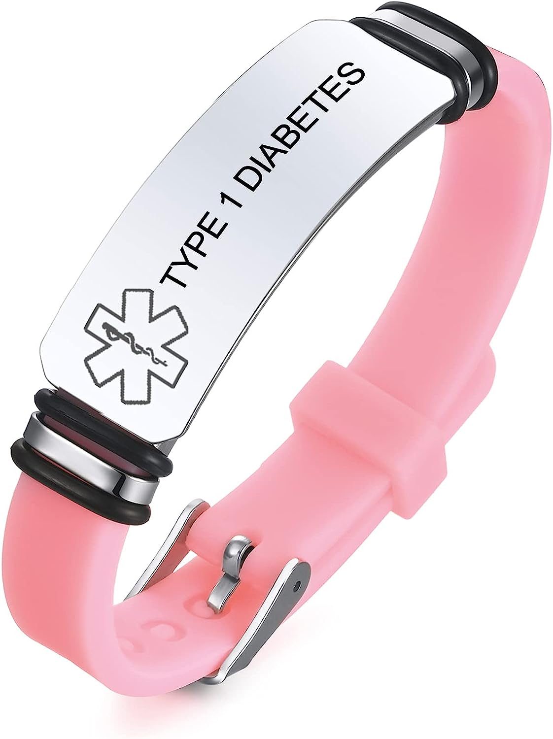 Personalized Silicone Medical Alert Type 1 Diabetes Bracelet Adjustable Disease Allergies Diagnose Identity ID Bangle Meds Emergency ICE Customized Jewelry for Women Men Teens