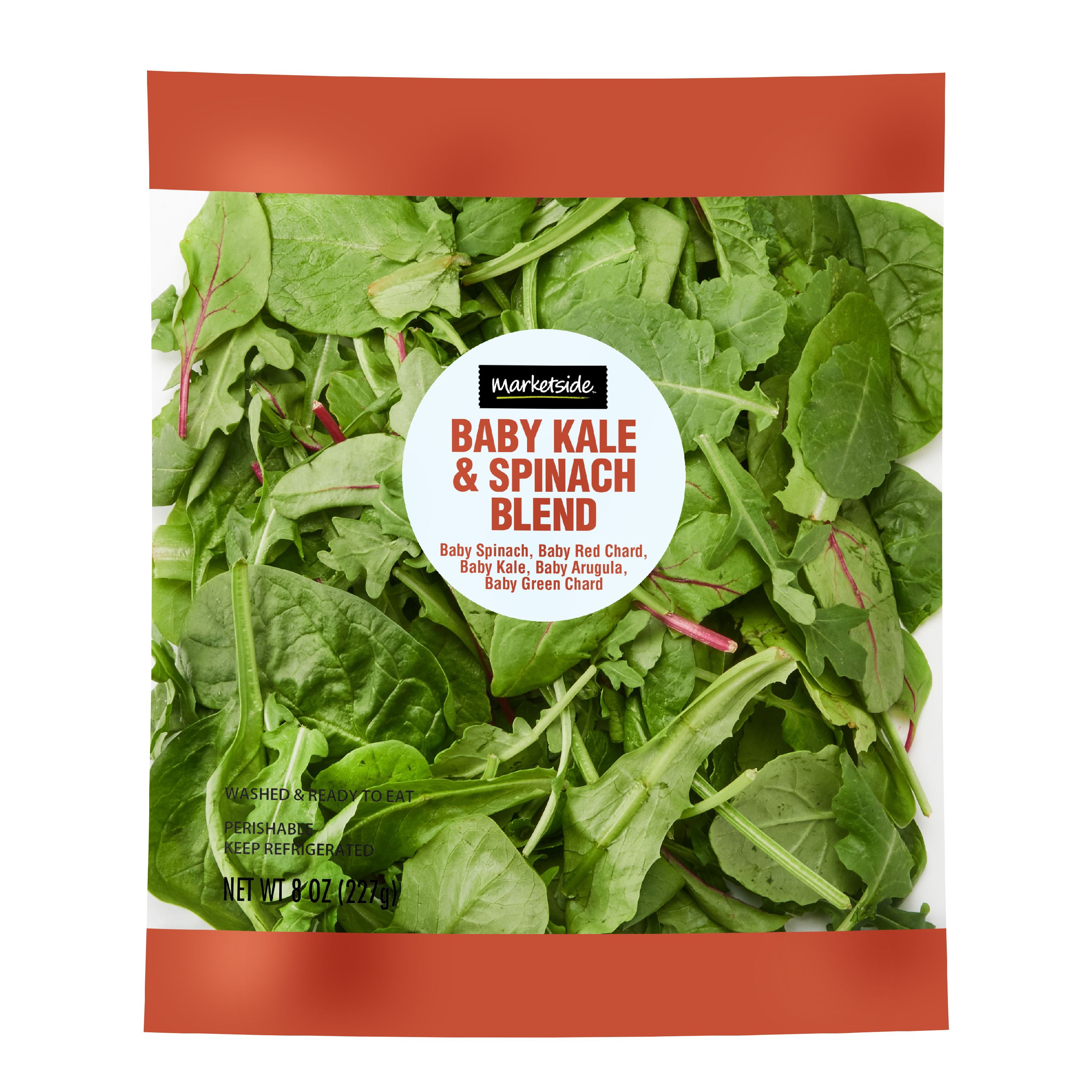 Marketside Baby Kale & Spinach is made with a wholesome medley of baby spinach, baby red chard, baby kale, baby arugula, and baby green chard. This mix is packed fresh, washed and ready to eat for your convenience. Use it to create your very own personalized salads that are tossed with your favorite vegetables, protein, nuts and dressing, use it as a topping on sandwiches and pizzas, or simply enjoy it as a healthy side. As a good source of nutritional benefits such as potassium, calcium, and iron,...