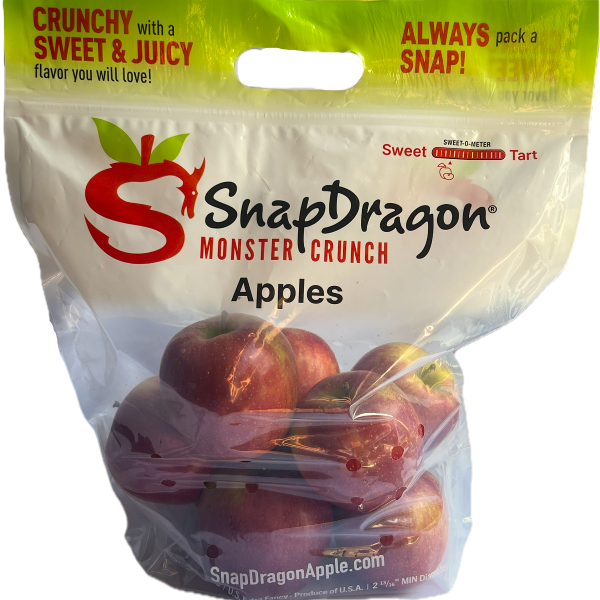 SnapDragon apples are known to have a monster crunch! Super juicy with a crisp texture and mild flavor with hints of vanilla and spice, pack a SnapDragon apple for a quick snack or top salads, waffles and oatmeal to add extra crunch.