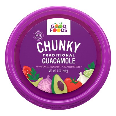 Enjoy fresh flavor you're sure to love with Freshness Guaranteed Chunky Guacamole. This tasty guacamole features a creamy and chunky combination of Hass avocados, tomatoes, jalapeno peppers, onion, garlic, lime juice, cilantro and a zesty mix of herbs and spices to ensure a mouthful of flavor in every bite. Add a dollop to your quesadillas, burgers, burritos, and sandwiches for a taste that will have you coming back for seconds. With fourteen servings per container, this gluten-free guacamole is...