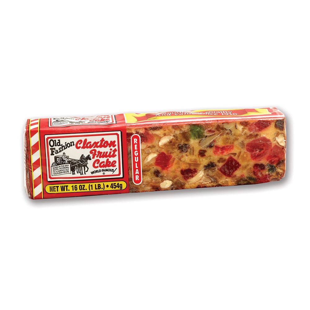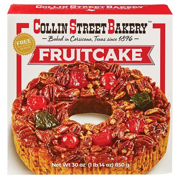 GOLDEN RAISINS (RAISINS, SULFUR DIOXIDE [PRESERVATIVE]), CANDIED CHERRIES (CHERRIES, CORN SYRUP, HIGH FRUCTOSE CORN SYRUP, SUGAR, WATER, CITRIC ACID, SODIUM BENZOATE [PRESERVATIVE], POTASSIUM SORBATE [PRESERVATIVE], FD&C RED #40, FD&C YELLOW #5, FD&C BLUE #1, SULFUR DIOXIDE [PRESERVATIVE], CALCIUM CHLORIDE), ENRICHED WHEAT FLOUR (WHEAT FLOUR, MALTED BARLEY FLOUR, NIACIN, REDUCED IRON, THIAMINE MONONITRATE, RIBOFLAVIN, FOLIC ACID), RAISINS, WATER, SUGAR, EGGS, GLAZE (WATER, CORN SYRUP SOLIDS, SUGAR, CORN SYRUP, CELLULOSE GUM, CITRIC ACID, POTASSIUM SORBATE [PRESERVATIVE], SODIUM BENZOATE [PRESERVATIVE], CARAMEL COLOR, NATURAL & ARTIFICIAL FLAVORS), WALNUTS, VEGETABLE SHORTENING (PALM OIL, SOYBEAN OIL, MONO- AND DIGLYCERIDES, POLYSORBATE 60, TBHQ [PRESERVATIVE], CITRIC ACID [PRESERVATIVE]), CONTAINS LESS THAN 2% OF: SOYBEAN OIL, GLYCERIN, PECANS, SODIUM PROPIONATE (PRESERVATIVE), SALT, NATURAL & ARTIFICIAL FLAVOR, BAKING POWDER (SODIUM ACID PYROPHOSPHATE, SODIUM BICARBONATE, CORN STARCH, MONOCALCIUM PHOSPHATE). THIS PRODUCT CONTAINS SULFITING AGENTS.