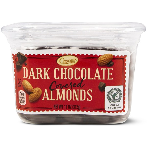 Freshness Guaranteed Dark Chocolate Almonds, 12.5 oz Savory almonds covered in rich dark chocolate Perfect on their own or mixed with dried fruit for a delectable trail mix Pack in your lunchbox or gym bag Comes in a reclosable container to help maintain freshness 170 calories per serving About 11 servings per container
