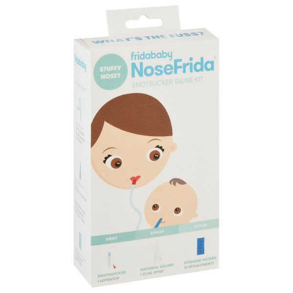 (1) Spraying saline solution in each nostril will help loosen thick mucus before using NoseFrida.