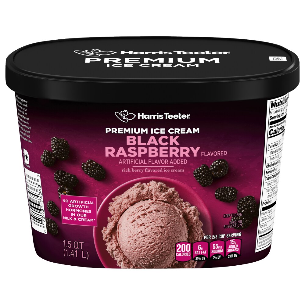 Ingredients: Milkfat and nonfat milk, sugar, corn syrup, high fructose corn syrup, black raspberry puree, sweetcream buttermilk, whey, contains less than 2% of beet juice (color), modified corn starch, natural flavor, citric acid, guar gum, mono and diglycerides, xanthan gum, Blue 1, carrageenan.