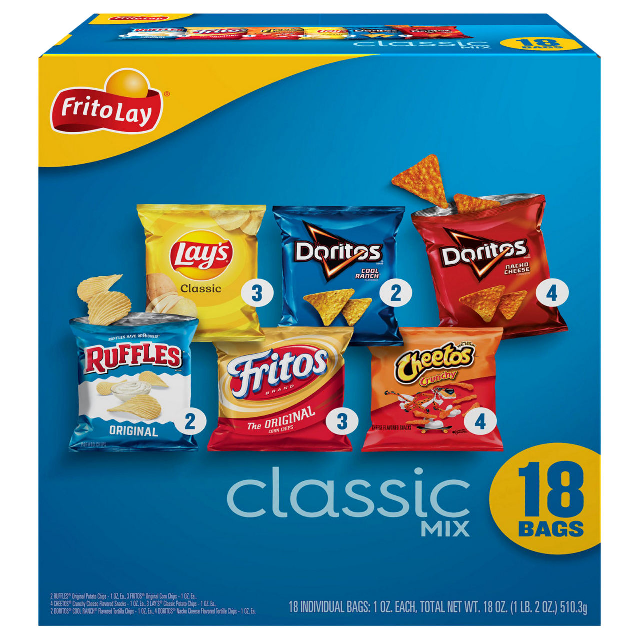 Baked Lay's® Original Potato Crisps - Dried Potatoes, Corn Starch, Corn Oil, Sugar, Sea Salt, Soy Lecithin, Dextrose, Annatto Extracts **Baked Cheetos® Crunchy Cheese Flavored Snacks - Enriched Corn Meal (Corn Meal, Ferrous Sulfate, Niacin, Thiamin Mononitrate, Riboflavin, Folic Acid), Vegetable Oil (Corn, Canola, and/or Sunflower Oil), Whey, Cheddar Cheese (Milk, Cheese Cultures, Salt, Enzymes), Maltodextrin (made from Corn), Natural and Artificial Flavors, Salt, Whey Protein Concentrate, Monosodium Glutamate, Lactic Acid, Citric Acid, Artificial Color (Yellow 6) **Smartfood® White Cheddar Cheese Flavored Popcorn - Popcorn, Vegetable Oil (Corn, Canola, and/or Sunflower Oil), Natural Flavor, Whey, Maltodextrin (made from Corn), Buttermilk, Cheddar Cheese (Milk, Cheese, Cultures, Salt, Enzymes), Salt **Baked Ruffles® Cheddar & Sour Cream - Dried Potatoes, Corn Starch, Corn Oil, Sugar, Maltodextrin (made from Corn), Salt, Soy Lecithin, Dextrose, Whey, Whey Protein Concentrate, Onion Powder, Cheddar Cheese (Milk, Cheese Cultures, Salt, Enzymes), Monosodium Glutamate, Blue Cheese (Milk, Cheese Cultures, Salt, Enzymes), Citric Acid, Artificial Color (Yellow 6 Lake, Yellow 5 Lake, Yellow 5, Yellow 6), Skim Milk, Natural and Artificial Flavors, Garlic Powder, Lactic Acid, Disodium Inosinate, Disodium Guanylate **Baked Lay's® Barbecue Flavored Potato Crisps - Dried Potatoes, Corn sTarch, Corn oil, Sugar, Salt, Soy Lecithin, Onion Powder, Maltodextrin (made from Corn), Dextrose, Brown Sugar, Molasses, Spices, Fructose, Tomato Powder, Garlic Powder, Yeast, Soybean Oil, Natural Flavors (contains Milk), Sunflower Oil, Paprika, Acacia Gum, Paprika Extracts, Annatto Extracts, Caramel Color