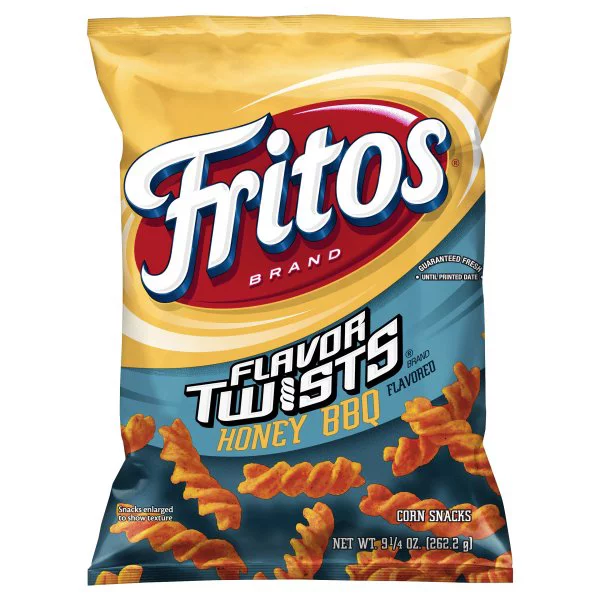 FRITOS Honey BBQ Twists are the classic FRITOS corn chip you know and love with a delicious Honey BBQ twist. Every bit as crunchy as original FRITOS corn chips; it's the sweet and tangy combination of honey, barbeque, and your favorite chip, all twisted up into one delicious bite.When your taste buds demand big-time flavor, a regular chip just isn't going to cut it. You need something so you could actually call it a little twisted.