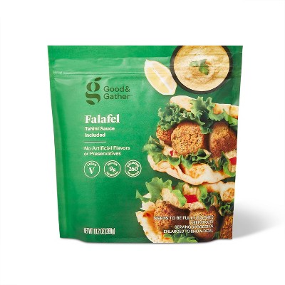 COOKED CHICKPEAS (WATER, CHICKPEAS), CHICKPEA FLOUR, ONION, EXPELLER PRESSED SUNFLOWER OIL AND/OR CANOLA OIL, SESAME SEEDS, WATER, SPICES, SEA SALT, BAKING SODA, GARLIC, CREAM OF TARTAR, GARLIC POWDER, TAHINI SAUCE (SESAME SEEDS, WATER, LEMON JUICE CONCENTRATE, SALT, GARLIC POWDER).