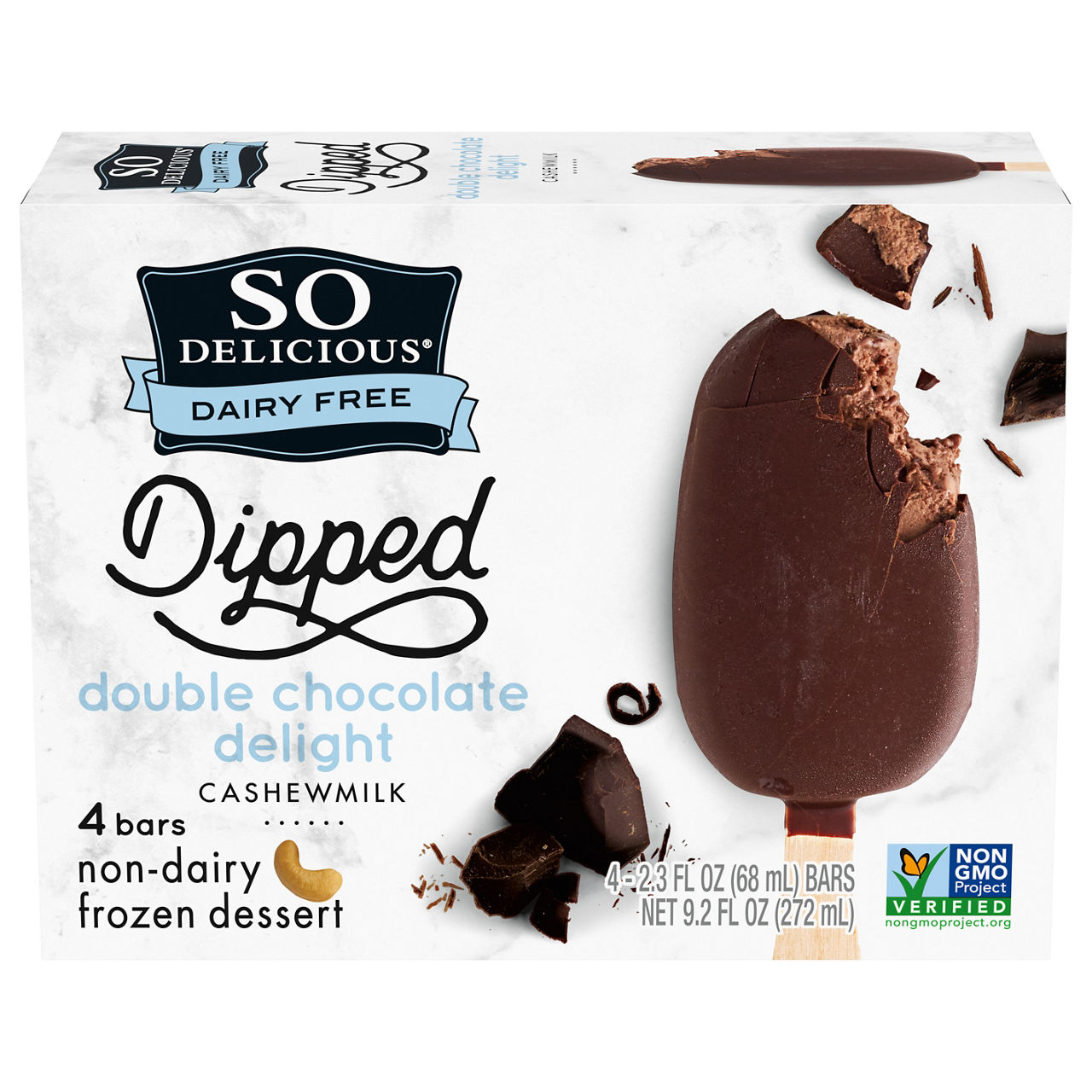So Delicious Dairy Free Cashew Milk Dipped Frozen Dessert Bar, Double Chocolate Delight, Vegan, Non-GMO Project Verified, 4 Pack