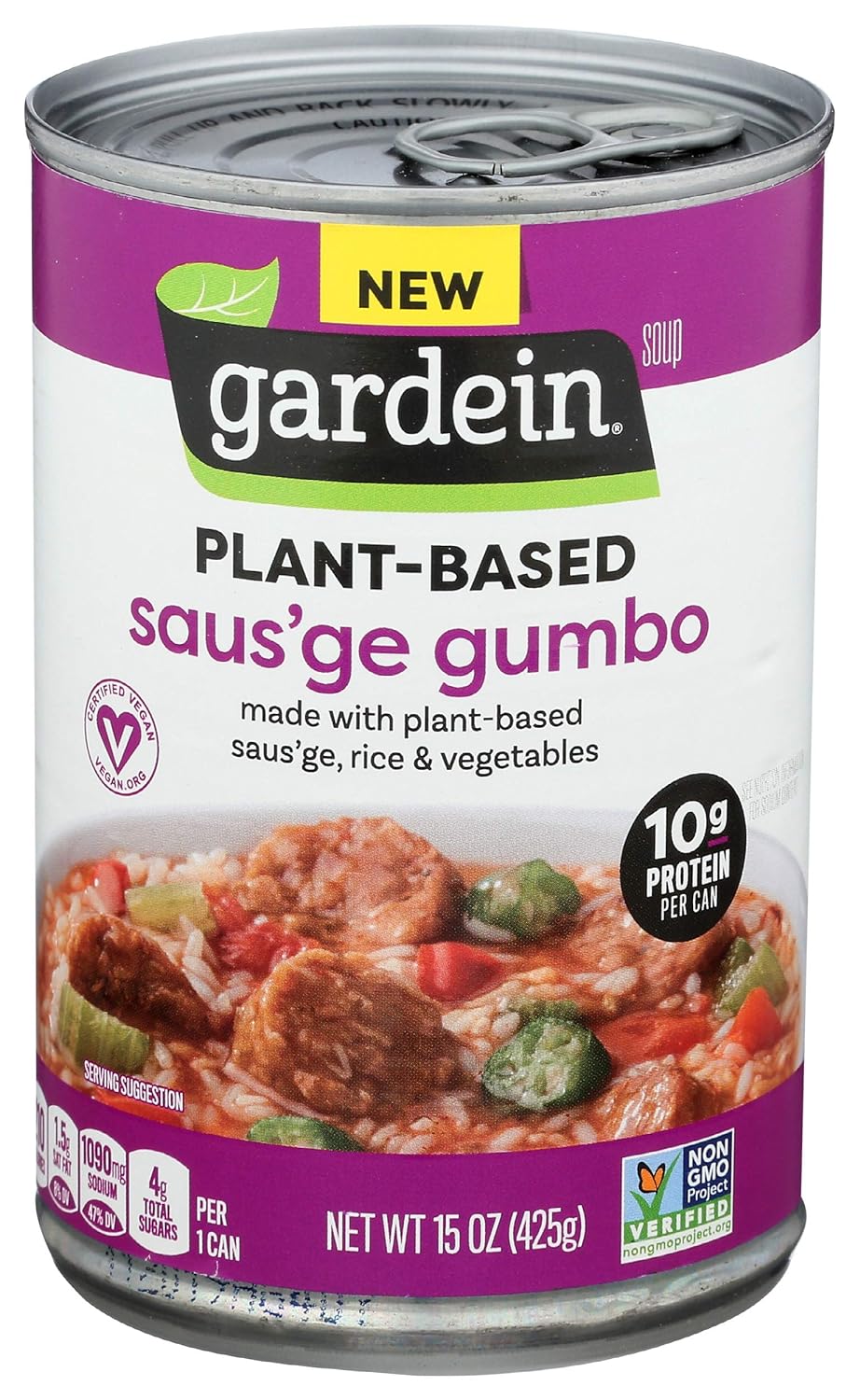 Water, Parboiled Long Grain Rice, Celery, Okra, Red Bell Peppers, Less than 2% of: Tomato Paste, Tomatoes, Textured Soy Protein Concentrate, Corn Starch, Salt, Canola Oil, Natural Flavors, Fire-Roasted Tomatoes, Palm Oil, Vital Wheat Gluten, Dried Onion, Yeast Extract, Soy Protein Isolate, Sugar, Spices, Methylcellulose, Garlic Powder, Paprika (Color), Potato Starch, Yeast, Tomato Powder, Crushed Red Pepper, Smoke Flavor, Olive Oil, Barley Malt Extract, Lactic Acid.