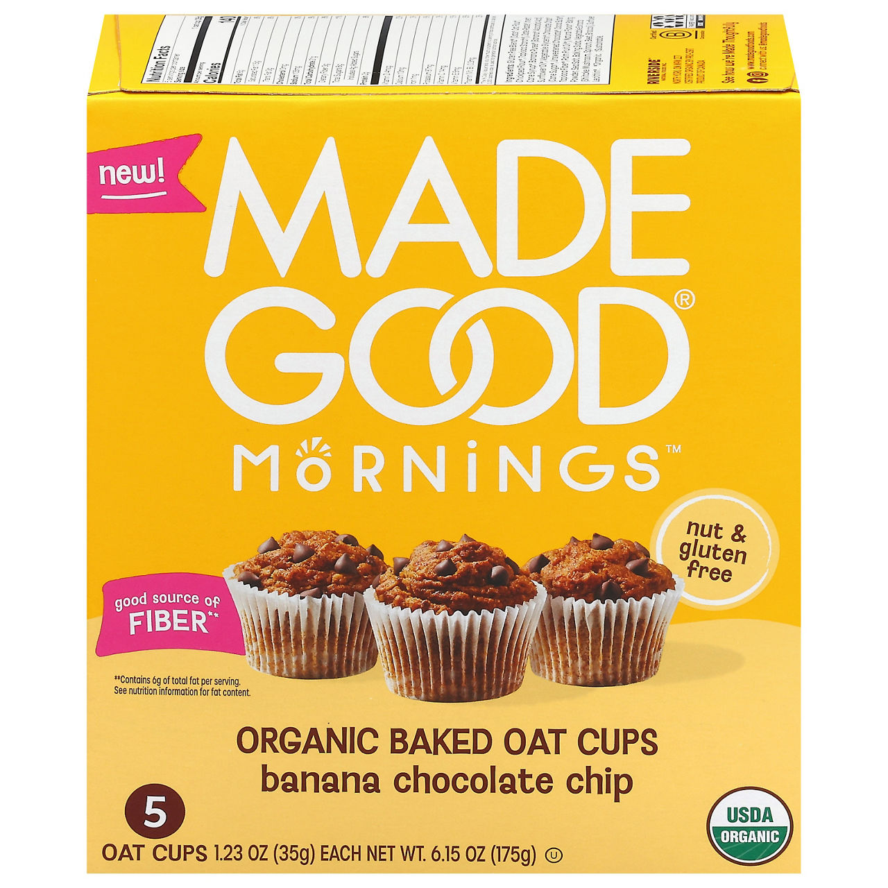 ZUCCHINI, EGG WHITES, SUGAR, WHOLE EGGS, OATS (CERTIFIED GLUTEN FREE), SEMI-SWEET CHOCOLATE CHIPS (ORGANIC CANE SUGAR, UNSWEETENED CHOCOLATE, COCOA BUTTER), BANANA, SORGHUM FLOUR, BROWN RICE FLOUR, CORN STARCH, SOLUBLE CORN FIBER, LEAVENING (BAKING POWDER), CANOLA OIL, FLAXSEED MEAL, NATURAL BANANA FLAVOR, SALT, NATURAL VANILLA FLAVOR.