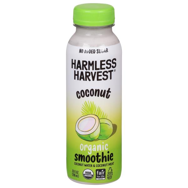 Whole Coconut Smoothie, Mocha Mocha with coconut water + coconut meat. 4.3 g MCTs per bottle; 911 mg potassium per bottle; 4 g good fats per bottle; 6 mg caffeine per bottle. USDA Organic. Certified Organic by Oregon Tilth. Dairy free. Certified Vegan. vegan.org. No added sugar, electrolytes. Plant-based. More than coconut water. Our smoothies blend the whole coconut coconut water + coconut meat to creamy, plant-based perfection. Now, that's Genius! geniusjuice.com. Follow. Share. Instagram: (at)genius_juice. This bottle is BPA free. We upcycle coconut husks to use the whole coconut. Visit us online to learn more!
