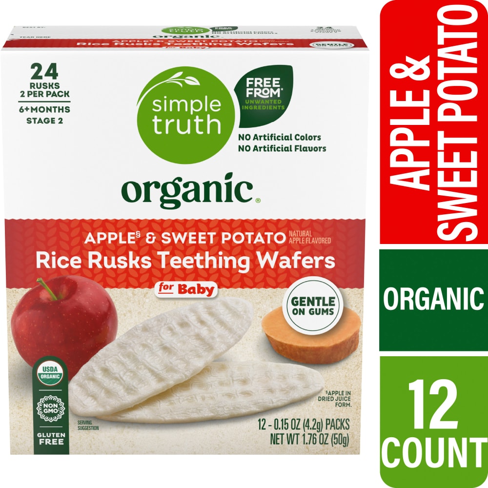 Gerber Banana Peach Teething Wafers are made to gently massage tender gums and are perfectly shaped for little ones to grasp on their own. Made with real fruits, juice and veggies, these teething biscuits have a delicious flavor that holds your baby’s interest while providing soothing relief. Gerber teethers have no artificial flavors, colors or sweeteners, and they are gluten free and unsalted. Designed to easily dissolve, these baby biscuits help your little one get past the troublesome teething...