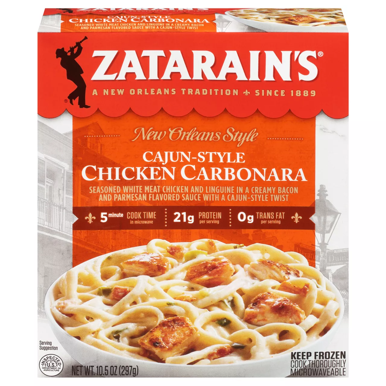 CHICKEN CARBONARA SAUCE: WATER, HEAVY CREAM (CREAM, MILK), GRILLED SEASONED CHICKEN BREAST MEAT STRIPS WITH RIB MEAT (CHICKEN BREAST MEAT WITH RIB MEAT, WATER, SALT, POTATO STARCH, VINEGAR POWDER, RICE STARCH DEXTROSE, NATURAL FLAVORS, SPICE), UNCURED SMOKED BACON NO NITRATES OR NITRITES ADDED EXCEPT FOR THOSE NATURALLY OCCURRING IN SEA SALT AND CULTURED CELERY JUICE (PORK, WATER, SEA SALT, CANE SUGAR, CULTURED CELERY JUICE, NATURAL FLAVOR), PARMESAN CHEESE (PASTEURIZED CULTURED PART-SKIM MILK, SALT, ENZYMES), ONIONS, 2% OR LESS OF MODIFIED FOOD STARCH, NATURAL FLAVORS, CORN MALTODEXTRIN SALT, YEAST EXTRACT, SPICE, SMOKE FLAVOR, BLACK PEPPER, NONFAT DRY MILK, TURMERIC. FETTUCCINE: DURUM WHEAT FLOUR, EGGS, WATER.