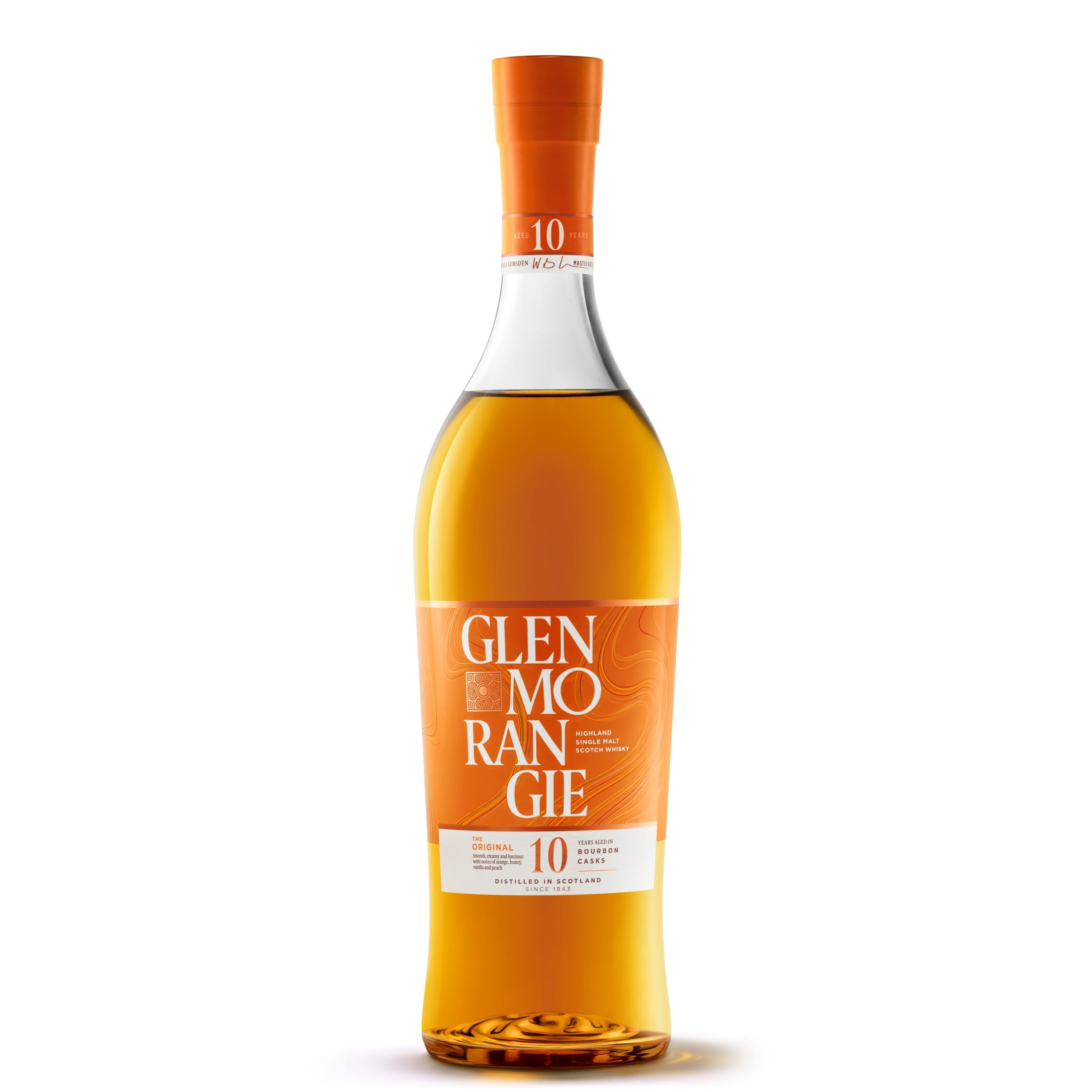 Glenmorangie Single Malt Scotch Whisky originates in the Scottish Highlands where it is distilled in the tallest malt whisky stills in Scotland, expertly matured in the finest oak casks, only used twice. Glenmorangie distillery, founded in 1843 is renowned as a pioneer in whisky making, uniting tradition with innovation. • Single Malt Scotch Whisky from the Highlands • Matured for ten long years • Matured in slow-grown and air-dried 'designer casks' from Missouri • Soft, mellow and creamy • Single Malt Scotch Whisky from the Highlands • Matured for ten long years • Matured in slow-grown and air-dried 'designer casks' from Missouri • Soft, mellow and creamy