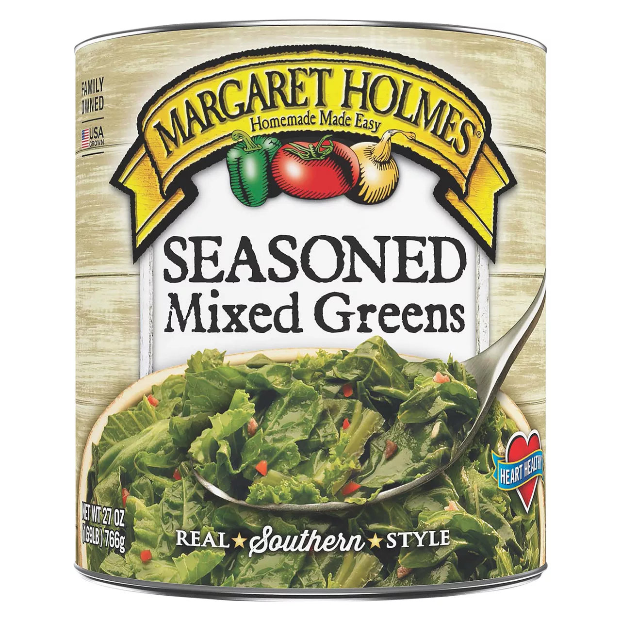 Mixed Greens (Turnip Greens & Mustard Greens), Water, Less than 2% of: Dried Cane Syrup, Sea Salt, Natural Flavor, Natural Smoke Flavor, Dried Onion, Apple Cider Vinegar, Dried Red Bell Pepper, Garlic Powder, Spice.