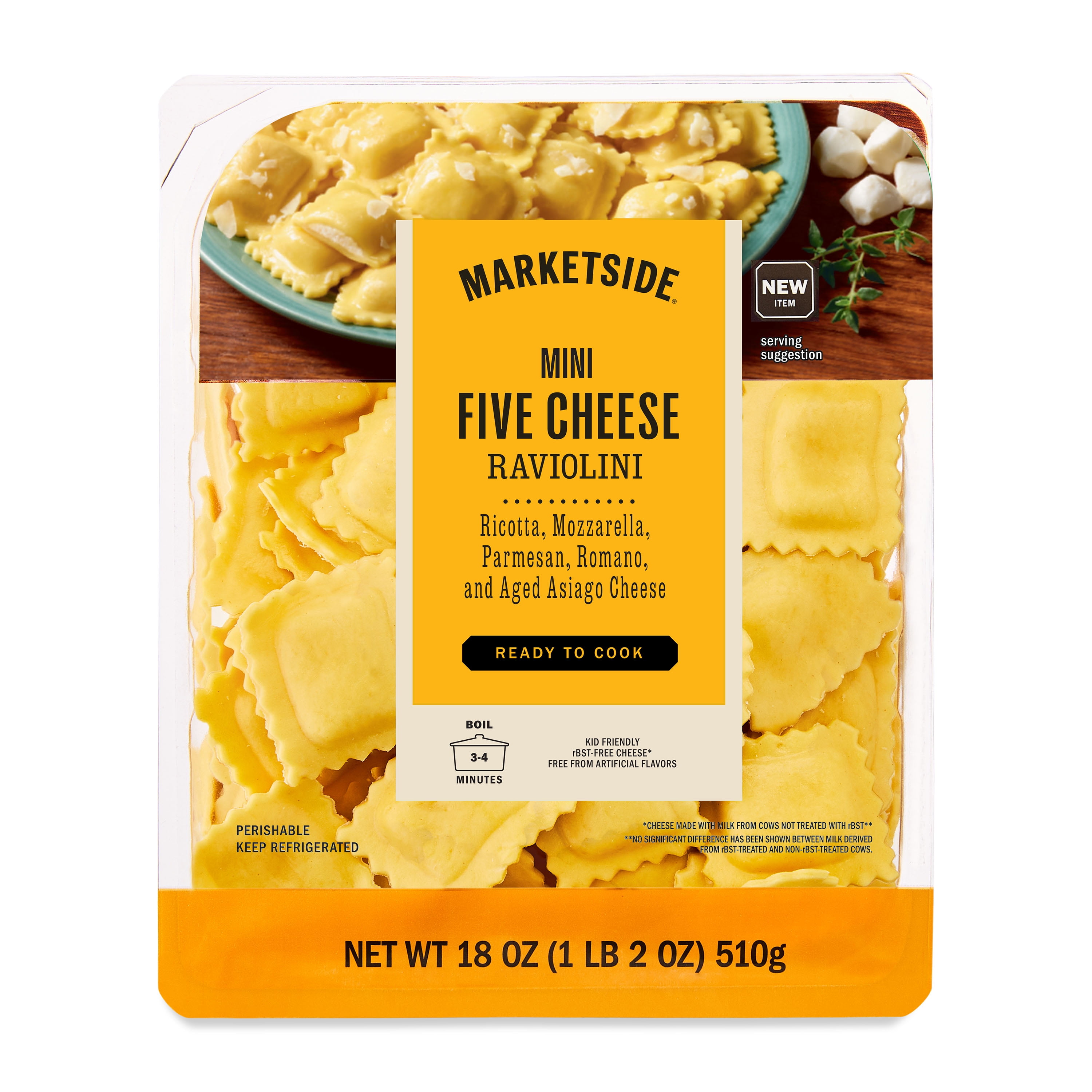 Filling: Pasteurized cream, pasteurized skim milk, breadcrumbs (wheat flour, salt, brewer's yeast), goat cheese (pasteurized goat's milk, salt, animal rennet, lactic acid starter culture, penicillium candidum), lactose, sunflower oil, dry whey/water, wheat flour, cornstarch, salt, cultured butter (pasteurized cream, lactic acid starter culture), dried onion, caramelized onions (red onion, wine vinegar, sugar, inulin), sugar, black pepper, vegetable juice (color), pasta (water, flour, egg, durum wheat semolina). Contains milk, egg, wheat. May contain soy.