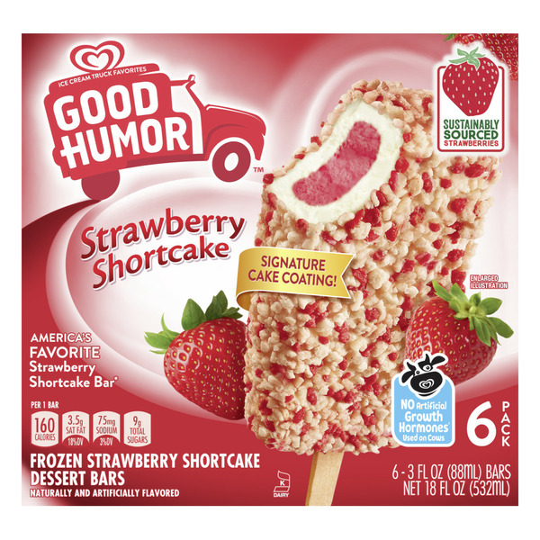 This frozen dairy dessert bar combines creamy vanilla flavored frozen dessert with a luscious strawberry core—then coats the whole thing in our signature strawberry shortcake cake coating. If you love vanilla and strawberry ice cream, then our this is sure to bring you heartfelt joy. This classic dessert will remind you to savor simple moments of joy, with its nostalgic flavors reminding you of the sound of ice cream truck bells growing louder as the truck rounded the corner. It doesn’t matter if you’re 9 or 99, this treat will transport you to a brighter, sunnier place where all the serious stuff of life seems to, well, melt away.