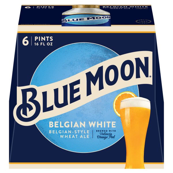 Blue Moon Belgian White Wheat Ale, 5.4% ABV, 6-pack, 12-oz. beer bottles
