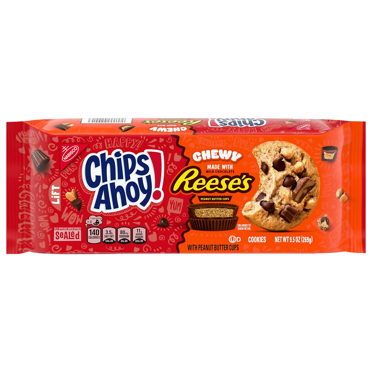 Ingredients: SUGAR, PEANUT BUTTER (PEANUTS, PALM OIL, CORN SYRUP SOLIDS, SALT), ENRICHED WHEAT FLOUR (FLOUR, NIACIN, REDUCED IRON, THIAMINE MONONITRATE, RIBOFLAVIN, FOLIC ACID), VEGETABLE OIL SHORTENING (CANOLA, PALM KERNEL AND PALM OILS), COCOA (PROCESSED WITH ALKALI), INVERT SYRUP, LEAVENING (BAKING SODA, MONOCALCIUM PHOSPHATE), SOY LECITHIN, SALT, ARTIFICIAL FLAVOR.