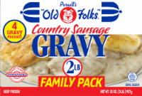 Ingredients: Water, Cooked Sausage Crumbles (Pork, Water, Salt, Spices, Sugar, Sodium Phosphate), Soybean Oil, Modified Food Starch, Enriched Wheat Flour (Bleached Wheat Flour, Niacin, Iron, Thiamine Mononitrate, Riboflavin, Folic Acid), contains less than 2% of: Whey Protein Concentrate, Salt, Sugar, Spices, Cornstarch, Titanium Dioxide (Color), Natural Flavor, Lactic Acid, Caramel Color.