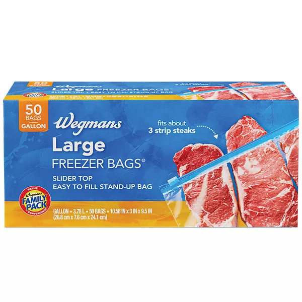 Store and carry your food safely with Great Value Double Zipper Gallon Freezer Bags. They provide a quality way to store all kinds of foods and are ready to use when you need them. Each bag is designed with a Fresh Seal zipper that is easy to open and close, and locks in the freshness. They are perfect for freezing food, marinating meat for the grill and a mess-free solution for crumbling cookies and crackers. Squeeze out all the air, and you can prevent freezer burn to retain the flavor in all...
