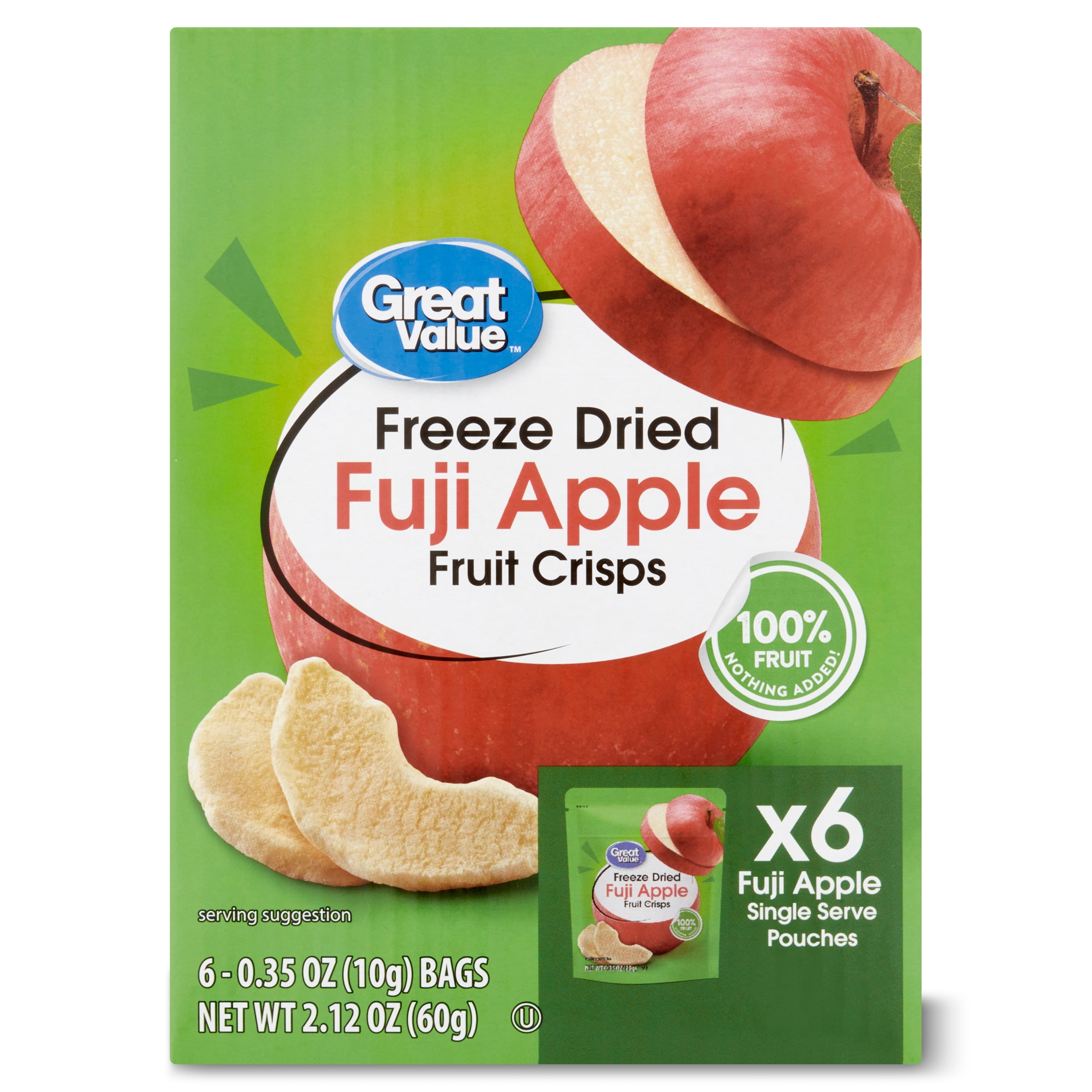 Snack time just got healthier with the Great Value Freeze Dried Apple Crisps Multi Pack. These packs contain just one simple ingredient: crisp Fuji apples that have been freeze dried for convenient snacking. Each pack has just 40 calories per serving and contains zero fat, cholesterol, sodium, and added sugars. Toss these packs into lunch bags, work bags, and glove compartments for those times when you need some quick energy on the go. Enjoy sweet, nutritious snacking with the Great Value Freeze...