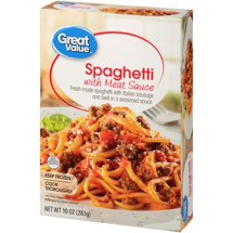 Great Value Frozen Spaghetti with Meat Sauce is a delicious entree made with Italian sausage and beef. This fresh-made spaghetti has a perfectly seasoned red sauce. There is one serving per package, and you can either cook it in the microwave or in a traditional oven. Serve with breadsticks and a salad, and you’ll have a hearty, home-cooked meal. For food safety and quality: cook product to an internal temperature of 165 degrees, and cook from frozen. This product has been passed by the USDA....