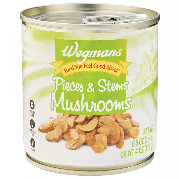 Make and impression with your next meal when you use Great Value Mushrooms Pieces and Stems. These mushrooms can be served as a simple side dish drizzled with olive oil and topped with parsley or used in a variety of sauce, dip, and soup recipes. Cook a roasted chicken in a creamy mushroom sauce, whip up a cheesy caramelized onion mushroom dip, or serve a hearty cream of mushroom soup. Each serving has just 30 calories and includes three grams of fiber and two grams of protein. Make a delicious meal...
