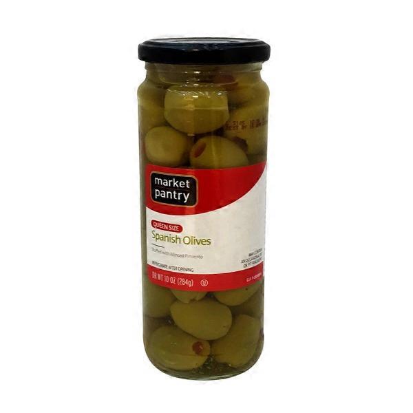 Salty, savory, and scrumptious, these Great Value Stuffed Pimento Jumbo Queen Olives will be a perfect addition to any meal. Enjoy as a snack with your family and friends, add them to a charcuterie platter, or put the chips away and use these green olives to satisfy your salty cravings. The pimento stuffing each olive makes them so much better than the average olive. Add a delicious element to your meals and snacks with Great Value Stuffed Pimento Jumbo Queen Olives. Great Value products provide...