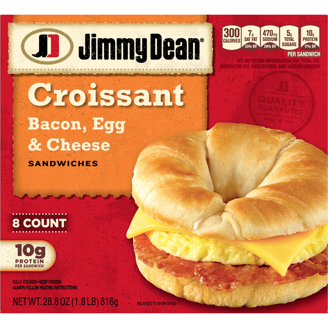Croissant: Enriched Flour (Wheat Flour, Malted Barley Flour, Niacin, Reduced Iron, Thiamine Mononitrate, Riboflavin, Folic Acid), Water, Margarine (Palm Oil, Water, Soybean Oil, Sugar, Soy Lecithin, Mono And Diglycerides, Potassium Sorbate And Citric Acid [Added As Preservatives], Natural And Artificial Flavors, Beta-Carotene [Color], Vitamin A Palmitate), High Fructose Corn Syrup, Contains 2% Or Less Of Each Of The Following: Yeast, Salt, Whey, Modified Corn Starch, Calcium Propionate (Preservative), Natural And Artificial Flavors (Dextrose, Sugar, Maltodextrin, Acacia Gum, Capric/Caprylic Triglycerides), Calcium Sulfate, Ascorbic Acid, Enzymes, Calcium Phosphate. Fully Cooked Egg Patty: Whole Egg, Whey, Soybean Oil, Nonfat Milk, Contains 2% Or Less Of: Food Starch-Modified, Salt, Xanthan Gum, Citric Acid, Natural Butter Flavor. Pasteurized Process American Cheese: Cheddar Cheese (Pasteurized Milk, Cheese Culture, Salt, Enzymes), Water, Sodium Citrate, Milkfat, Salt, Sodium Phosphate, Sorbic Acid (Preservative), Apo-Carotenal (Color), Soy Lecithin (Non-Sticking Agent). Fully Cooked Bacon: Pork Cured With Water, Sugar, Salt, Smoke Flavoring, Sodium Phosphate, Sodium Erythorbate, Sodium Nitrite.