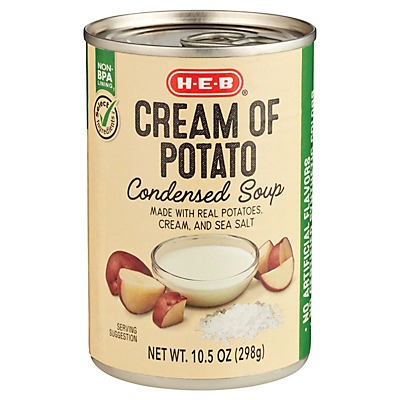 Great Value Cream of Potato Condensed Soup, 10.5 oz Condensed soup - just add water Keep a can on hand to add richness and depth of flavor to a wide variety of meals like casseroles and stews 0g trans fat 80 calories per serving 10.5oz tab top can