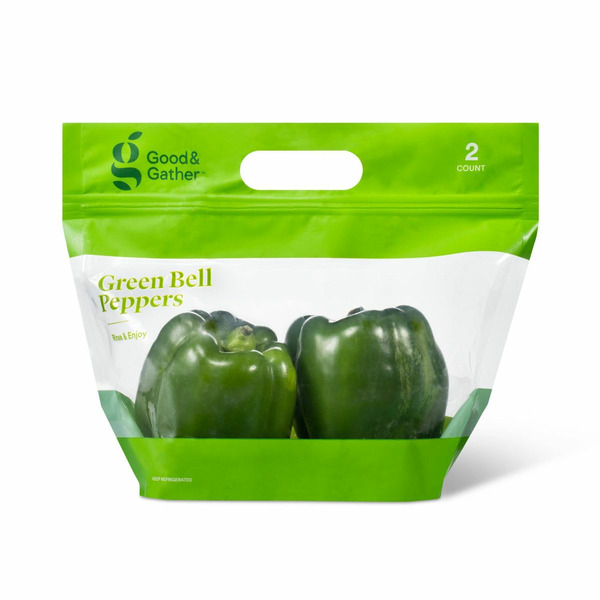 From arranging a veggie snack tray to preparing satisfying, savory dishes, you're sure to find lots of uses in your kitchen for 2-Count Green Bell Peppers. These green bell peppers are suitable for simply slicing and enjoying raw on a veggie tray along with your favorite dips like ranch or hummus, or for using in a variety of recipes from fajitas to stir frys and more. Or you can whip up a classic Cajun or Creole dish when you start with diced green bell pepper, onion and celery as a flavorful base...