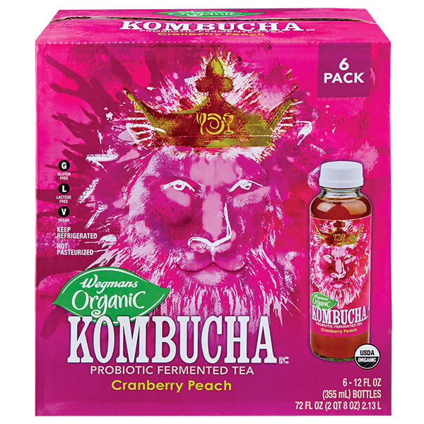 Wegmans Organic Cranberry Peach Kombucha, 6 Pack