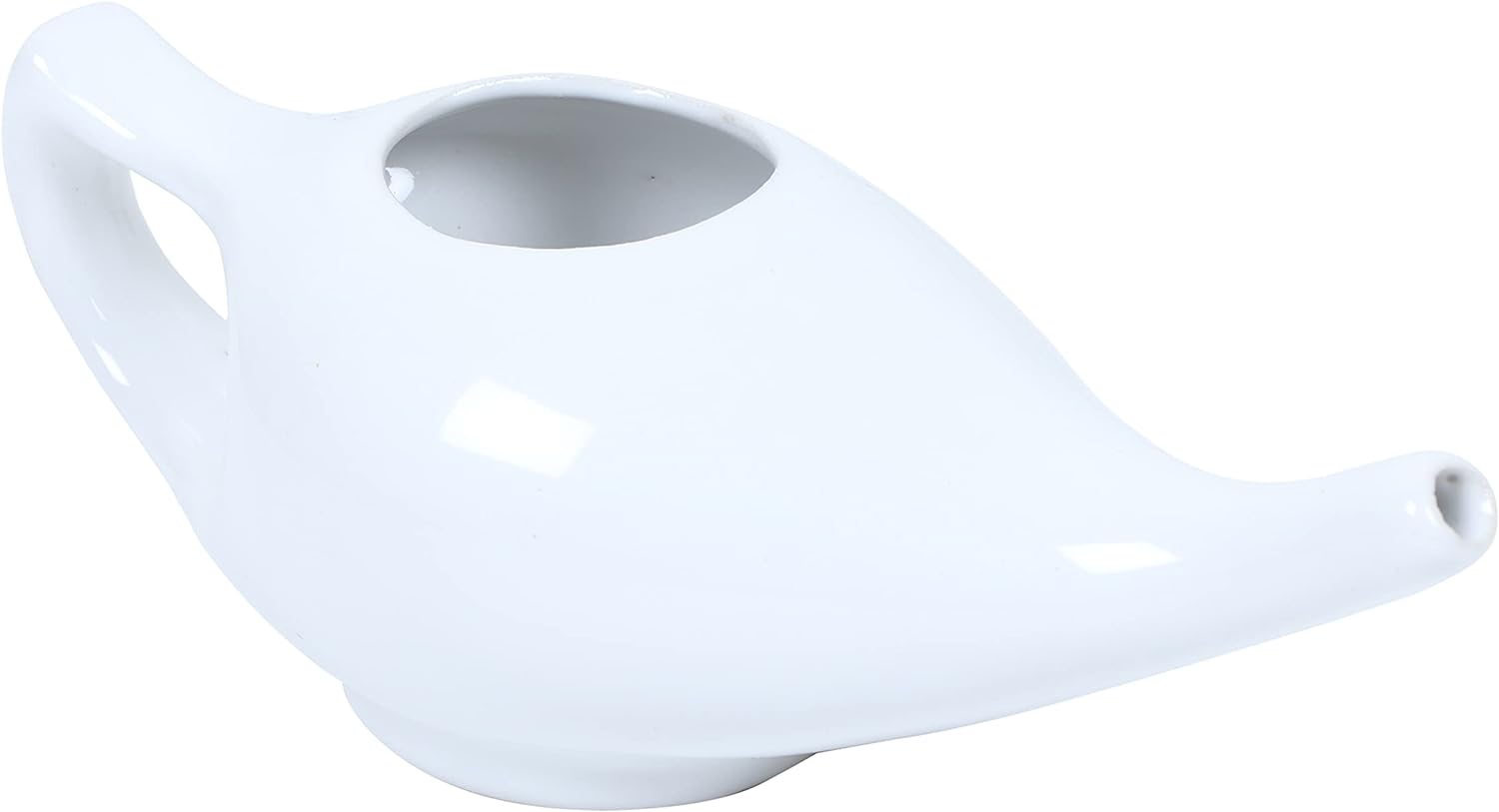 HealthGoodsIn Ceramic Neti Pot, Premium Handcrafted Durable, Dishwasher Safe with 2 Silicone Nozzle Tip