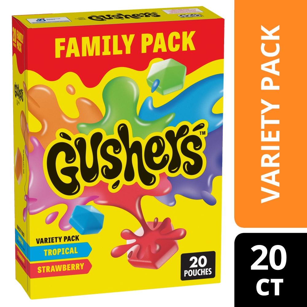 Tropical Ingredients: Corn Syrup, Sugar, Pear Puree, Modified Corn Starch, Fructose, Maltodextrin, Palm Oil. Contains 2% or less of: Cottonseed Oil, Glycerin, Grape Juice Concentrate, Citric Acid, Carrageenan, Monoglycerides, Sodium Citrate, Malic Acid, Vitamin C (ascorbic acid), Natural and Artificial Flavor, Potassium Citrate, Agar-Agar, Xanthan Gum, Color (red 40, blue 1, yellows 5 & 6).Strawberry Ingredients: Corn Syrup, Sugar, Pear Puree, Modified Corn Starch, Fructose, Maltodextrin, Palm Oil. Contains 2% or less of: Cottonseed Oil, Glycerin, Grape Juice Concentrate, Citric Acid, Carrageenan, Monoglycerides, Sodium Citrate, Malic Acid, Vitamin C (ascorbic acid), Potassium Citrate, Agar-Agar, Natural Flavor, Red 40, Xanthan Gum.