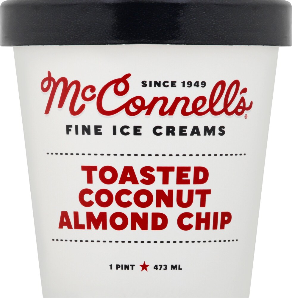 Milk, Cream, Skim Milk, Sugar, Corn Syrup, Roasted Almonds (Almonds, Safflower Oil, Butter), Naturally Flavored Chocolate Chips (Sugar, Coconut Oil, Cocoa Processed with Alkali, Cocoa, Salt, Soy Lecithin, Natural Flavor), Less Than 2% of: Coconut, Malic Acid, Dextrose, Natural Flavor, Phosphoric Acid, Corn Starch, Gum Arabic, Citric Acid, Tartaric Acid, Carob Bean Gum, Guar Gum.