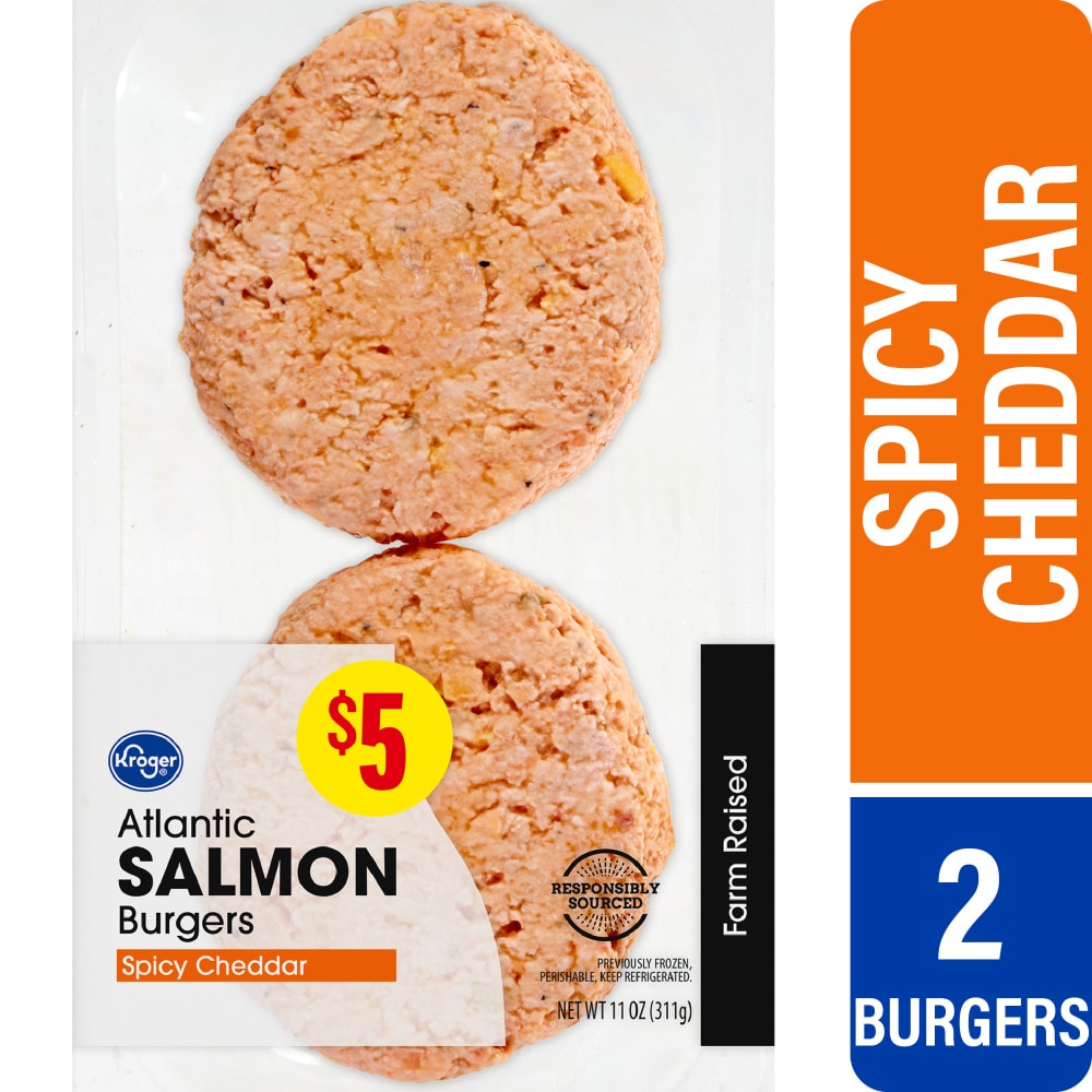 Farm Raised Salmon (Salmon, Color Added Through Feed) Fiesta Jalapeno Burger Kit (Pico De Gallo(Tomatoes, Onions, Lime Juice, Jalapeno Peppers, Green Onions, Cilantro, Serrano Peppers, Salt, Vinegar), Diced Pasteurized Process Cheddar Cheese (Pasteurized Milk, Water, Pasteurized Cream (Milk), Sodium Phosphate, Cheese Cultures, Potato Starch (Anticaking), Salt, Powdered Cellulose (Anticaking), Sorbic Acid(Preservative), Enzymes, Apocarotenal (Color), Natamycin(Mold Inhibitor)), Jalapeno Peppers, Fiesta Jalapeno Spice Seasoning (Paprika, Salt, Spices, Sugar, Garlic, Onions, Citric Acid, Silicon Dioxide (Anticaking), Lemon Powder (Sugar, Lemon Oil Concentrate, Citral, Silicon Dioxide(Anticaking)))), Bread Crumbs (Wheat Flour, Sgar, Yeast, Salt). Contains a Bioengineered Food Ingredient.