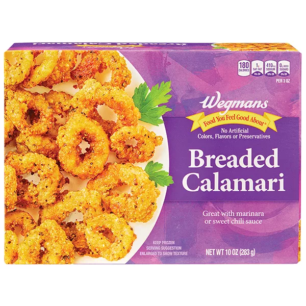 Squid, Wheat Flour, Egg Whites, Black Pepper, Salt, Sugar, Garlic Powder, Onion Powder, Wheat Gluten, Water, Leavening (Sodium Acid Pyrophosphate, Sodium Bicarbonate), White Corn Flour, Yeast, Soybean Oil, Yeast Extract, Modified Corn Starch, Dehydrated Parsley, Paprika Extract, Spices, Natural Flavors, Cellulose Gum. Contains A Bioengineered Food Ingredient