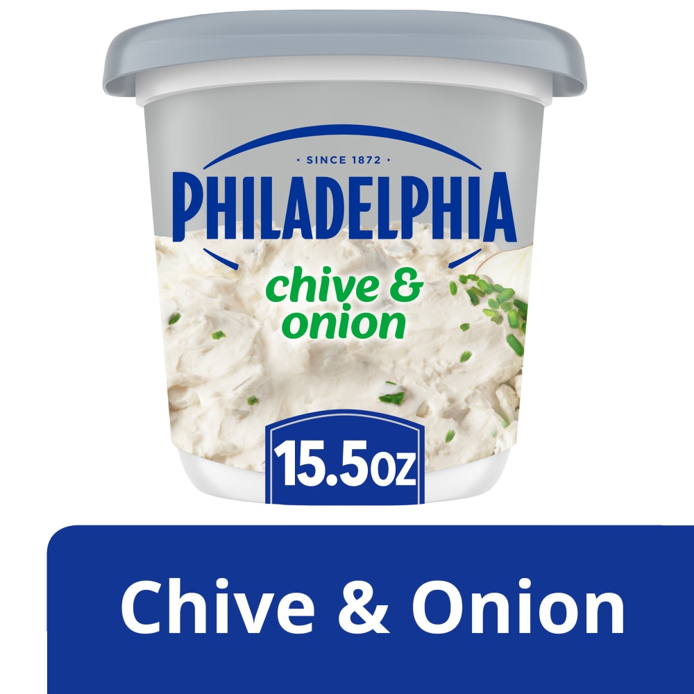 •Tub of chive & onion cream cheese spread •Soft and spreadable onto bagels, bread and crackers •Fresh, herby flavor