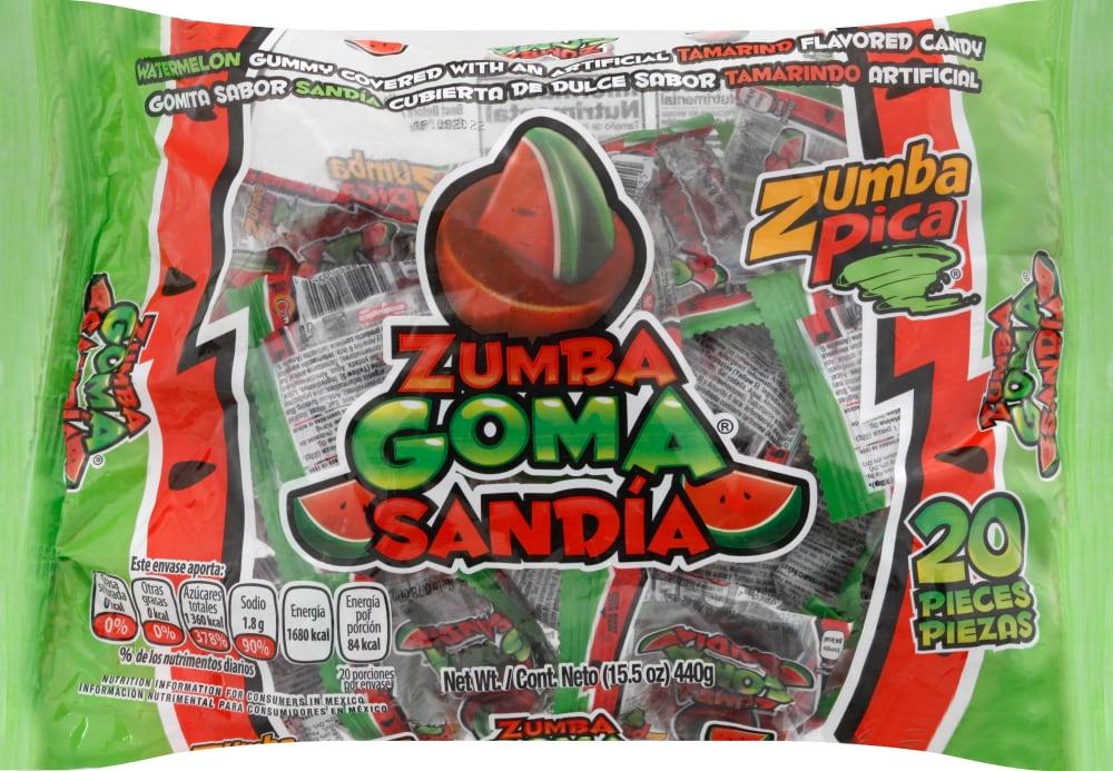 Zumba Pica Goma Sandia Gummy Candy, Mexican Tamarind and Watermelon Candy, 20 Ct
