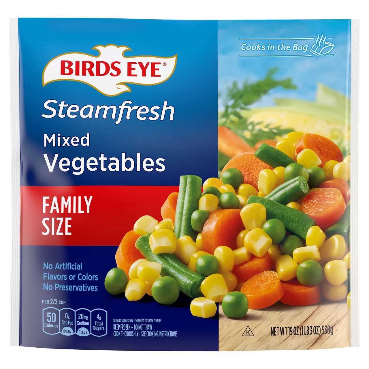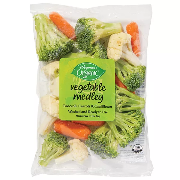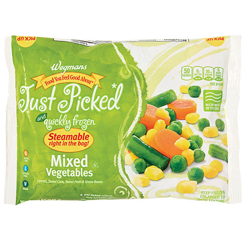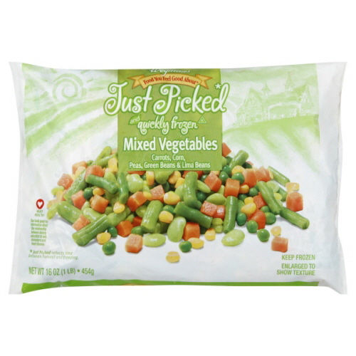 Hust Picked* and quickly frozen. Broccoli, Cauliflower, Carrots, Zucchini & Yellow Squash. Our Food You Feel Good About yellow banner is your shortcut to great-tasting products with no artificial colors, flavors or preservatives. *Just Picked reflects time between harvest and freezing.