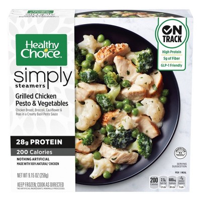 Liven up your day with Healthy Choice Power Bowls Basil Pesto Chicken with Riced Cauliflower. Healthy Choice frozen entrees are a delicious way to get a reliable source of fiber and protein to help you power through your day. This frozen meal features pulled all-natural* chicken breast and a mix of white kidney beans and vegetables, including dark leafy greens, yellow squash and tomatoes with basil pesto sauce, perfect for gluten free meals with bold flavor. A delicious way to keep you feeling satisfied,...